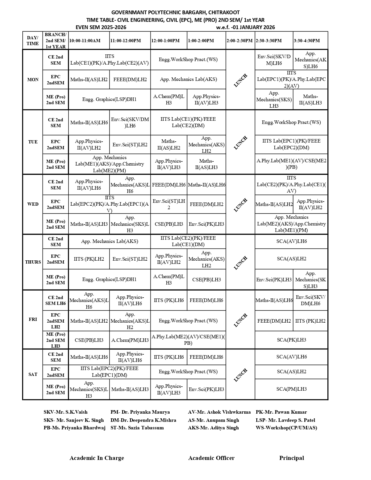 Civil Engineering & Civil (EPC), ME (PRO) 2ND SEMESTER