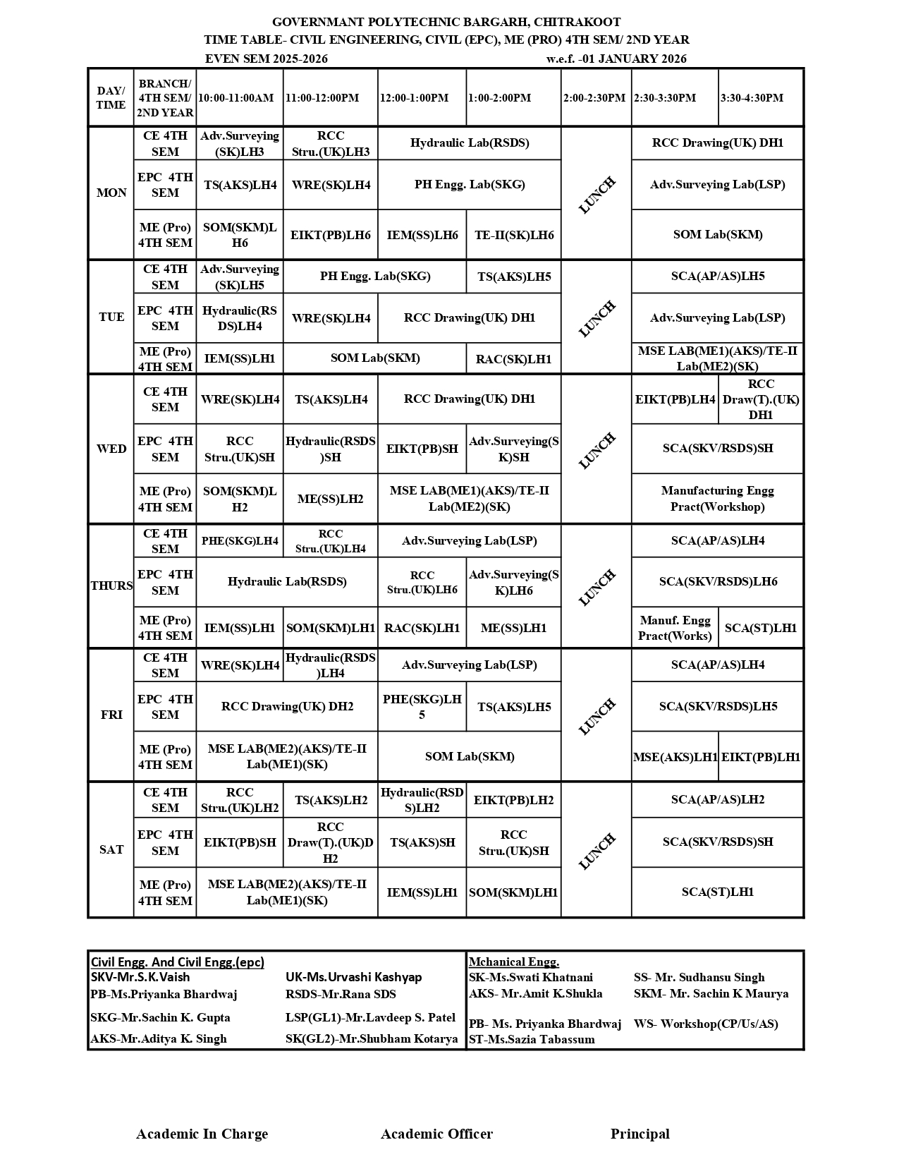 Civil Engineering & Civil (EPC), ME (PRO) 4TH SEMESTER