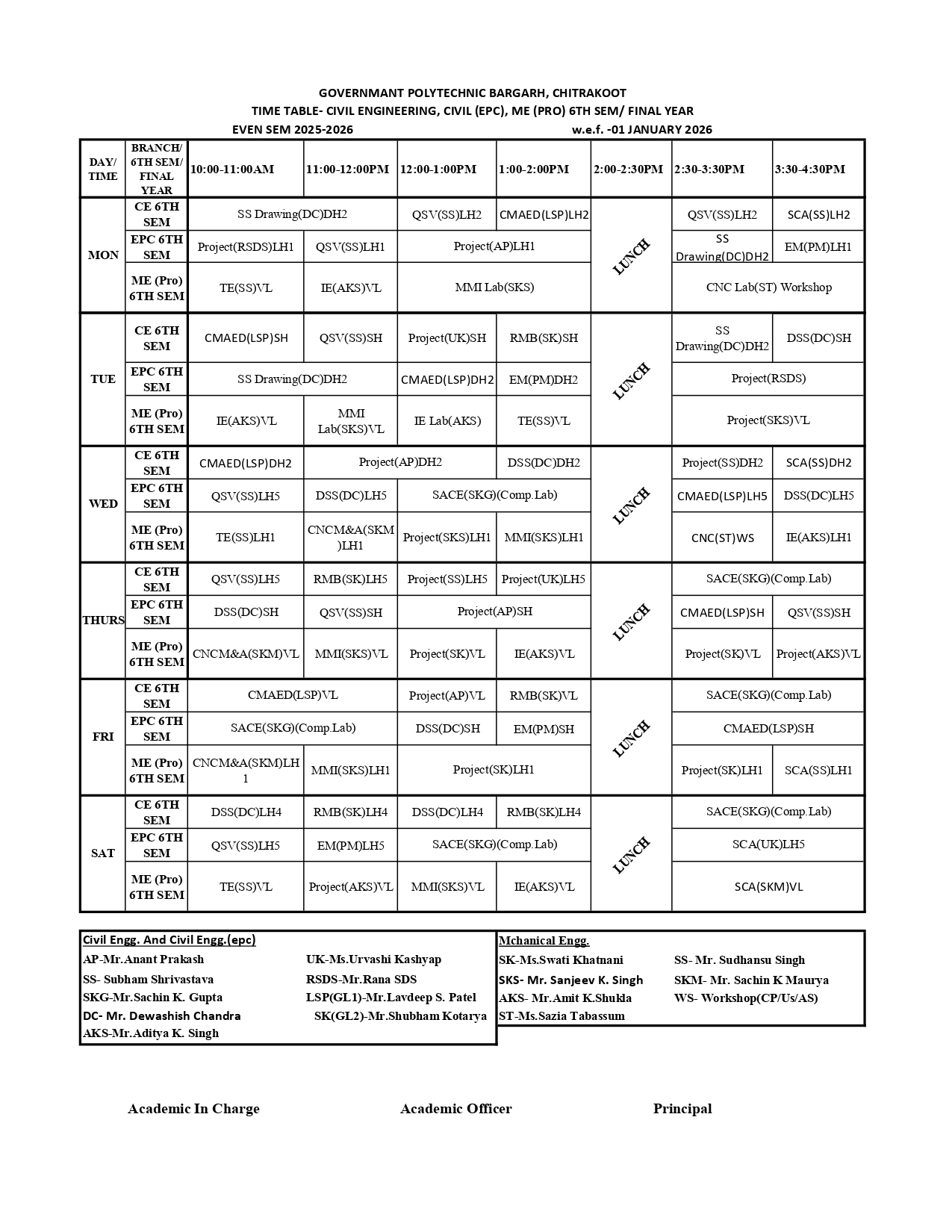Civil Engineering & Civil (EPC), ME (PRO) 6TH SEMESTER